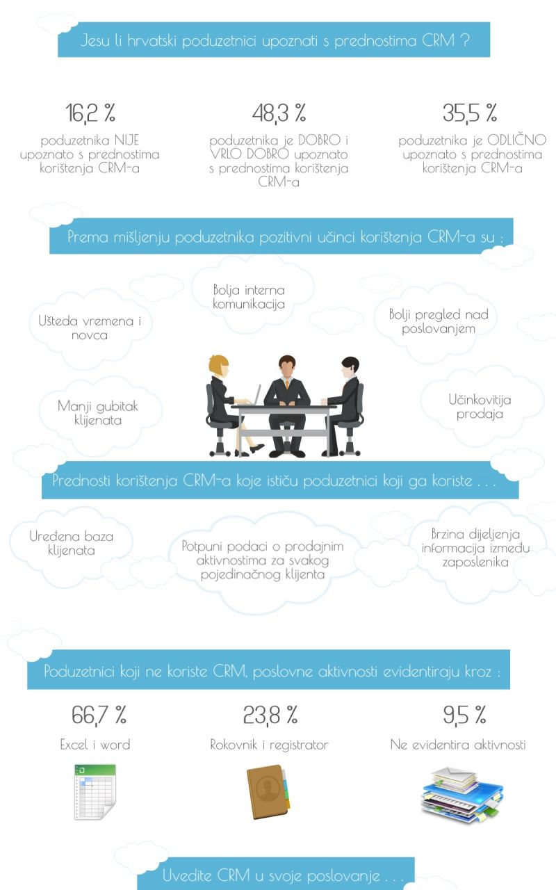Moderno poslovanje danas je gotovo nezamislivo bez kvalitetne implementacije nekih od dostupnih CRM (Customer Relation Managment) rješenja, ipak tek se rijetki mali i srednji hrvatski poduzetnici (od 1 do 100 zaposlenika) odlučuju na korištenje CRM-a u svakodnevnom poslovanju.