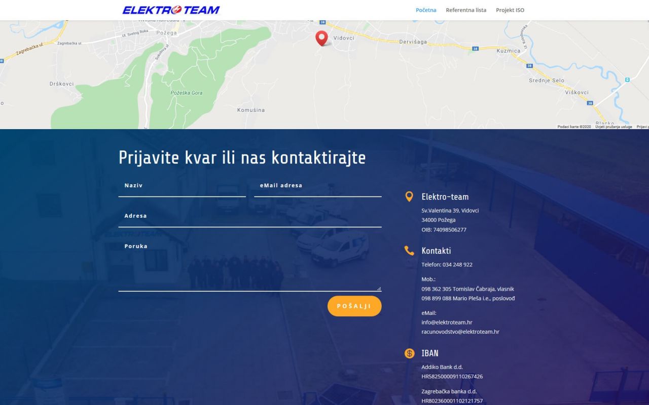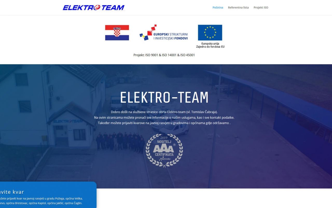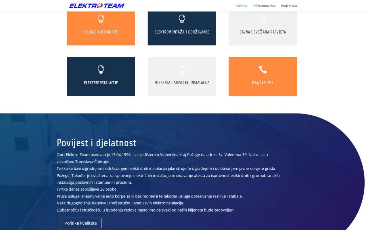 Za tvrtku Elektro Team iz Požege, izradili smo internet stranic (web stranicu).
