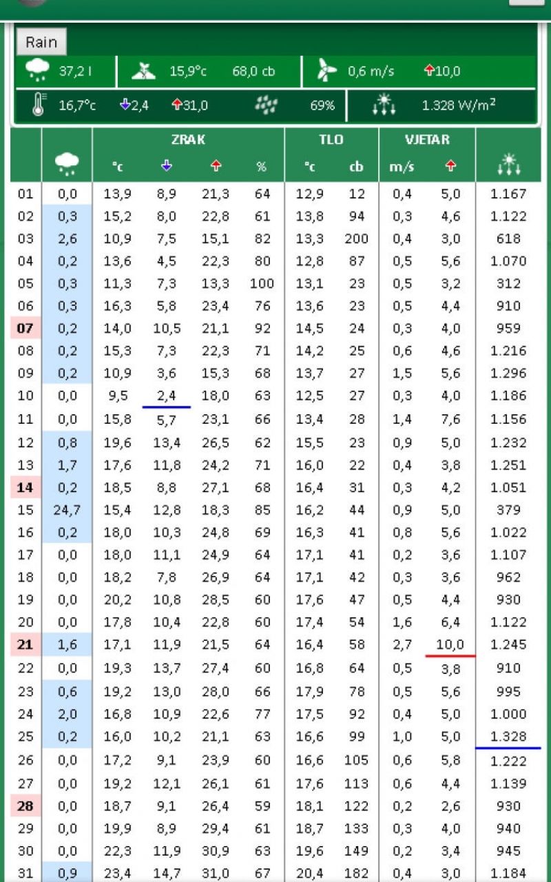 Za meteo stanicu tvrtke Pinova, razvili smo mobilnu aplikaciju za uvid i pregled podataka sa meteorološke stanice.