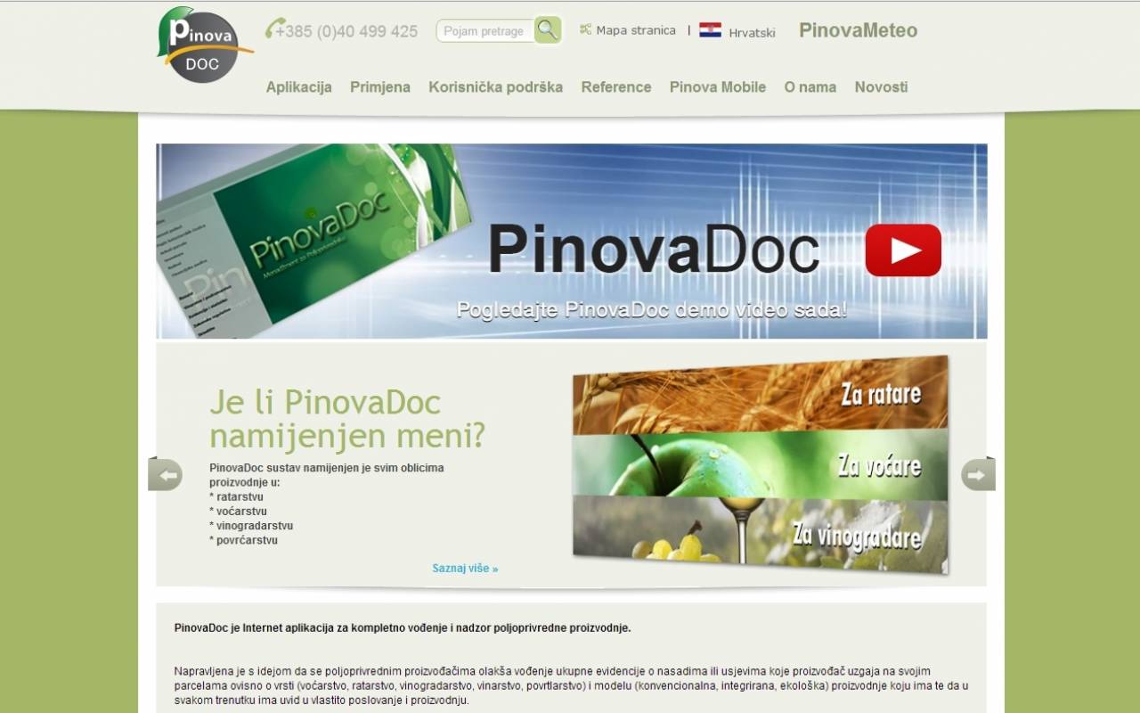 Izradili smo internet stranice za tvrtku PINOVA d.o.o. iz Čakovca, specijalizirane za PinovaDoc internet aplikaciju za kompletno vođenje i nadzor poljoprivredne proizvodnje.
