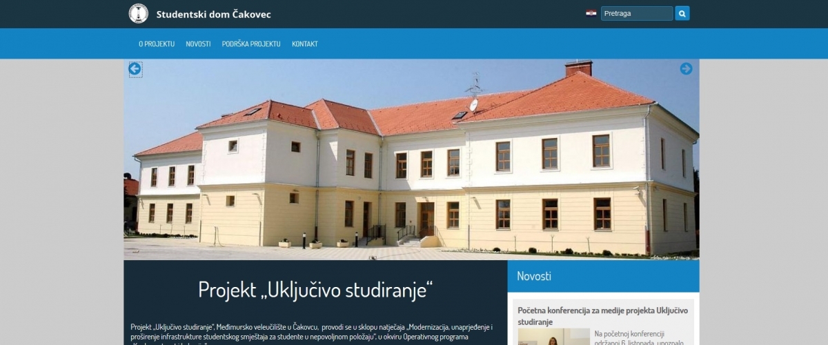 Izradili smo internet stranice za projekt "Uključivo studiranje" koji provodi Međimursko veleučilište u Čakovcu, a kojim će se revitalizirat zgrada starog vojnog kompleksa u Ulici bana Josipa Jelačića za potrebe prvog Studentskog doma u Čakovcu.