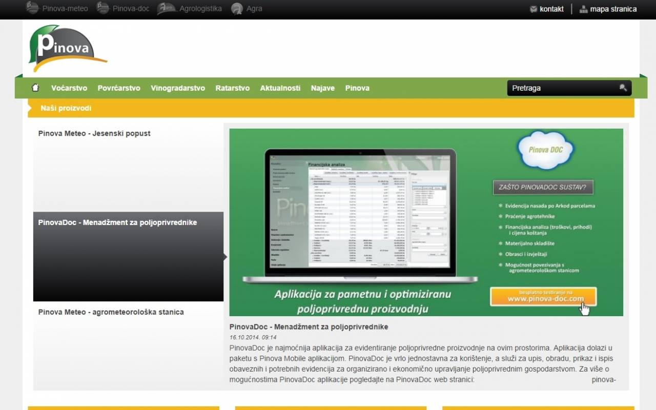 Izradili smo internet stranice za tvrtku PINOVA d.o.o. iz Čakovca, koja se bavi se razvojem, promocijom i prodajom proizvoda za poljoprivredu.
