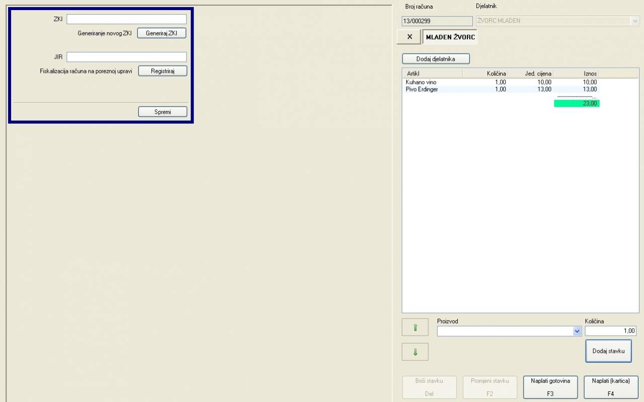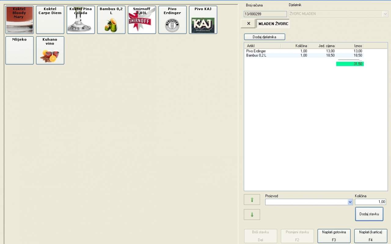 U toku izdavanja robe i pružanja usluga (kreiranja računa), artikl koji ulazi na račun se definira pomoću bar-kod čitača ili s tipkovnice, pri čemu je svaki artikl moguće 'pozvati' na više načina (bar-kod oznaka, ID broja ili naziva).