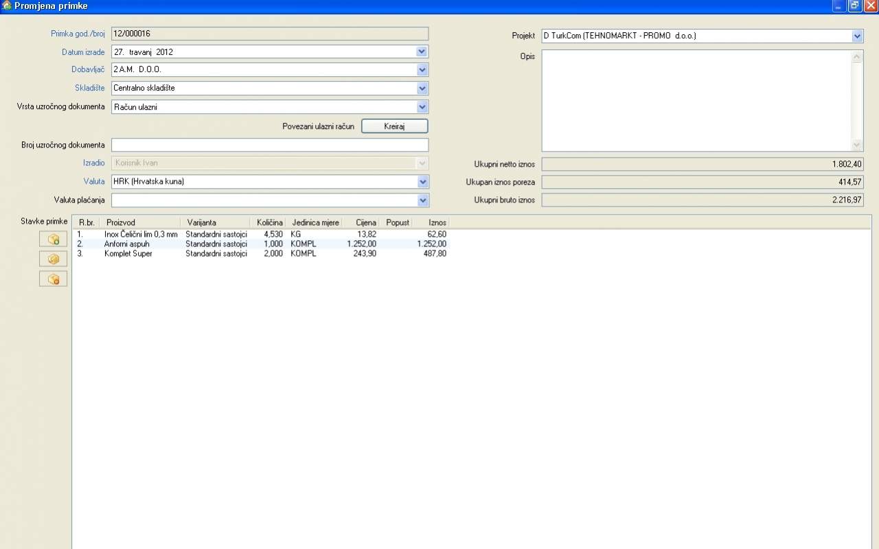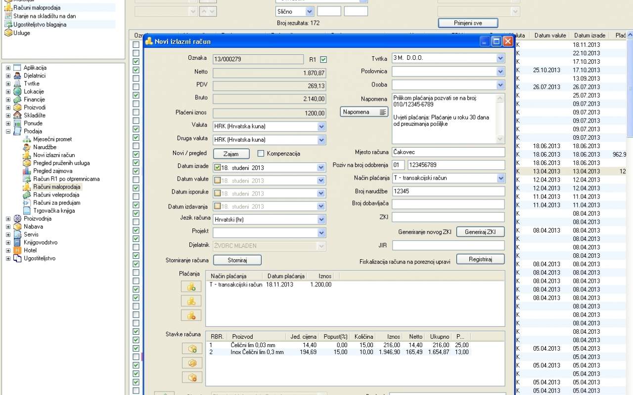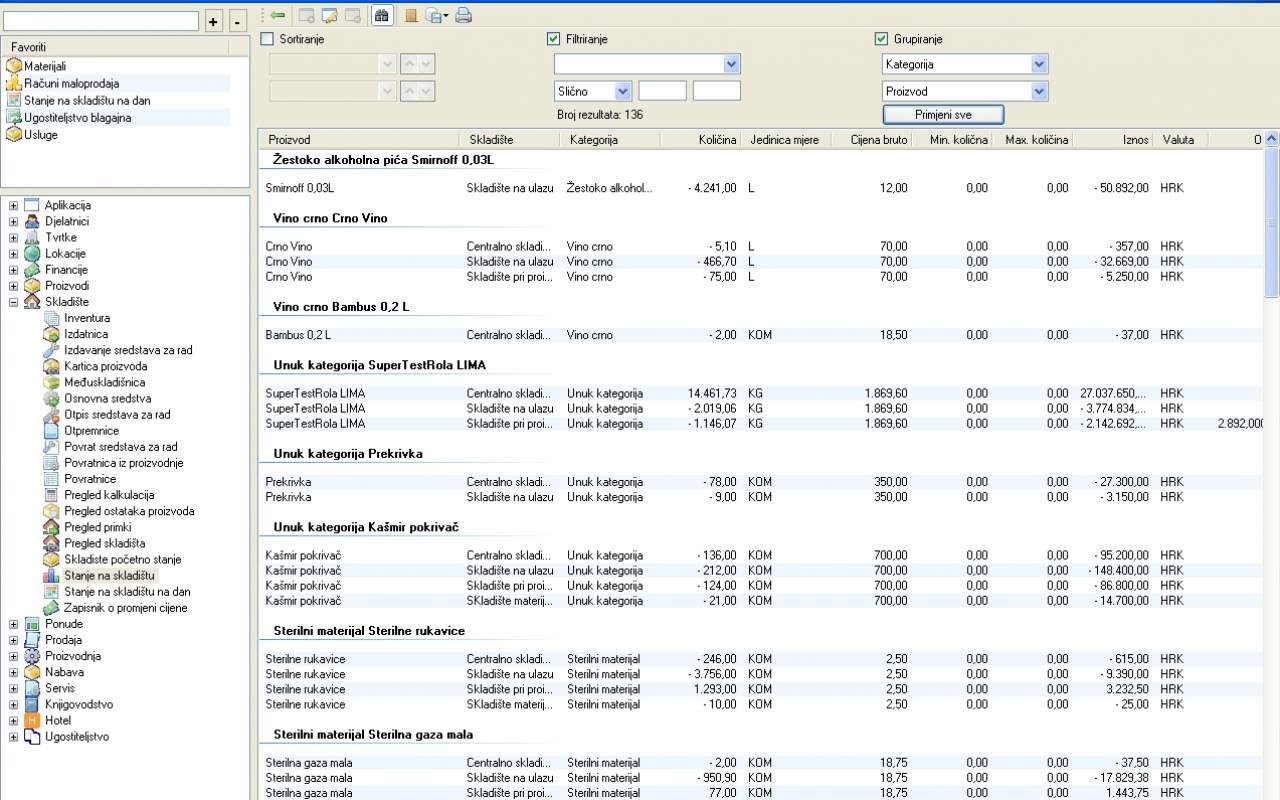 Kreiranjem i provedbom računa stanje na skladištu se automatski ažurira te na taj način možete u svakom trenutku vidjeti raspoloživu količinu proizvoda i da li postoji potreba za naručivanjem nove robe (minimalna količina na skladištu).
