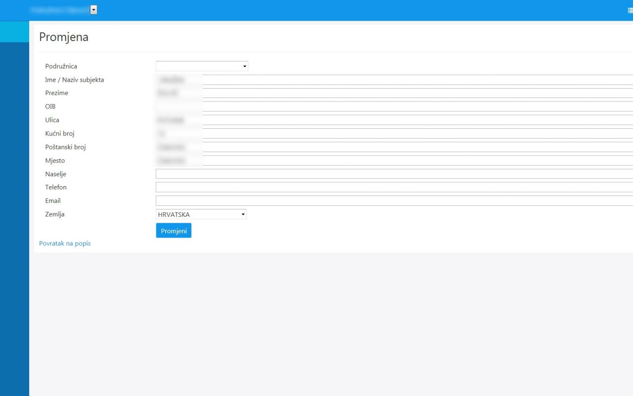 - korekcija podataka/adresa primjenjuje se na sve djelatnike - centralizirano,