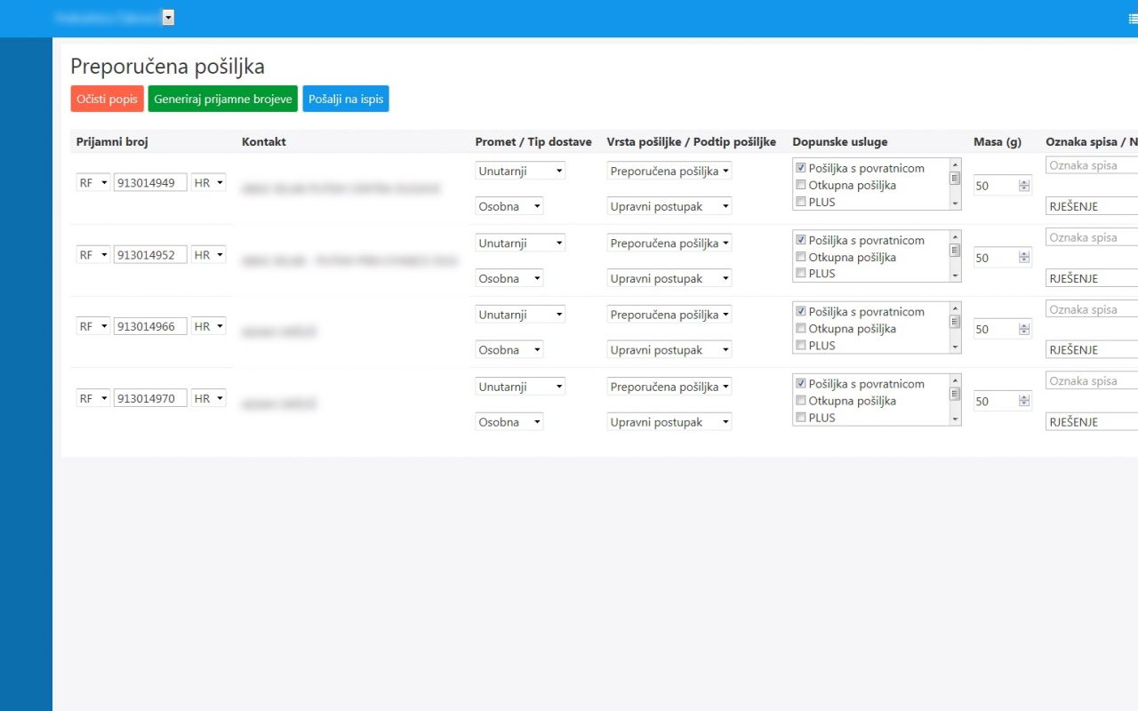 - znatne uštede u vremenu pripreme pošiljaka za predaju u poštanski ured,