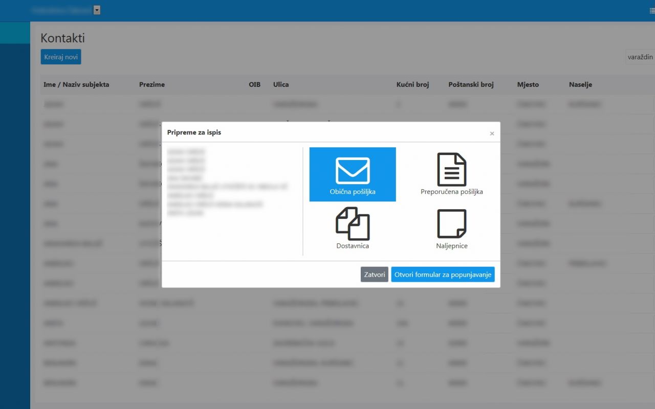 - mogućnost ponovnog ispisa postojećeg ispisa, pojedinačno ili svih,
